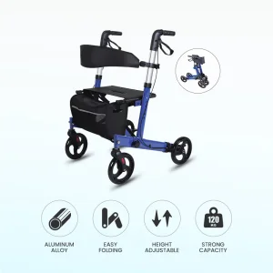 Aluminum Rollator Walker with Seat & Storage Bag - Lightweight Mobility Aid